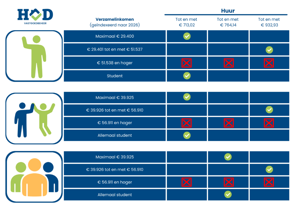 Bekijk hier de visuele weergave. - Ben je jonger dan 21 jaar en wil je huren met huurtoeslag? Je komt dan alleen in aanmerking voor woningen met een huur tot € 498,20 (prijspeil 2026). Indien je hiervoor kiest dien je dit bij het inzenden van het screeningsformulier bij ons aan te geven in het veld Toelichting.